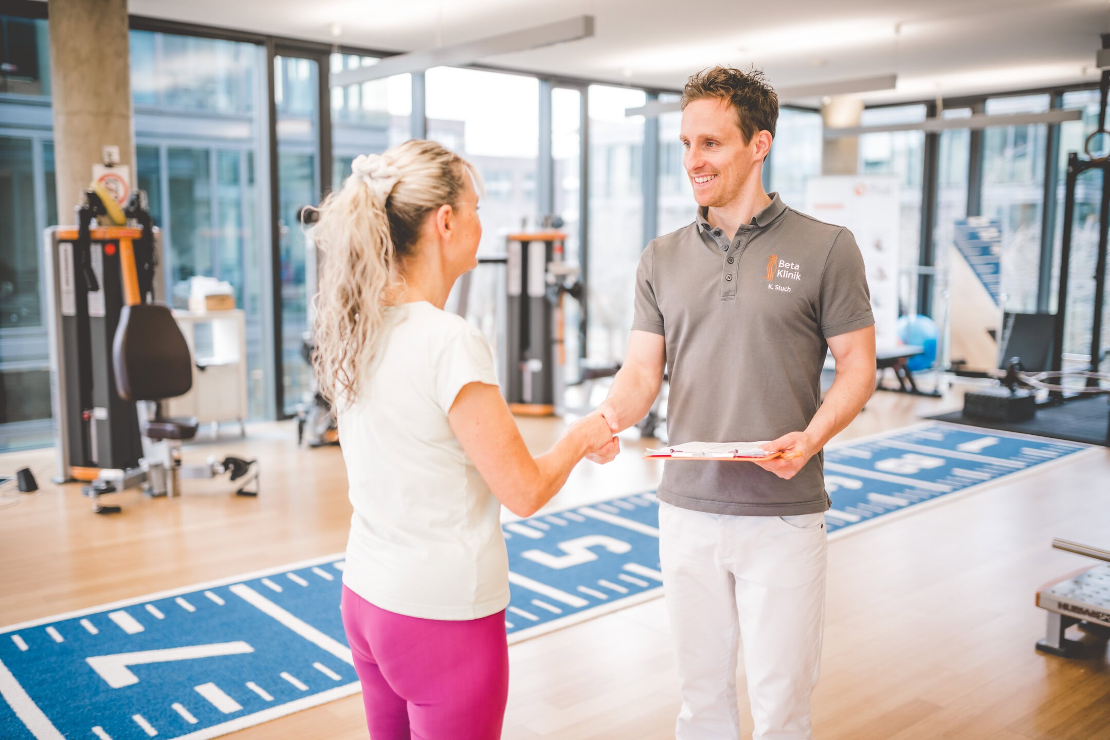 In der zweiten Woche ging es auf die Trainingsfläche der Beta Klinik. Im Bereich Sport und Reha (Physiotherapie) hat Luis viel über den menschlichen Bewegungsapparat gelernt. „Ich bin sehr sportbegeistert und helfe gern Menschen. Die Arbeit eines Physiotherapeuten hat mich daher sehr interessiert. Der Mix aus Bewegung und individueller Therapie und Unterstützung ist spannend. Das Team hat mich herzlich aufgenommen. Sie haben mir die unterschiedlichen Geräte gezeigt und mir erklärt, welche Körperbereiche und Muskeln wie gestärkt und mobilisiert werden können. Und dann durfte ich die Geräte auch ausprobieren,“ resümiert er seine zweite Praktikumswoche. Besonders imposant war das moderne Trainingsgerät Huber 360®, das ein individuelles neuromuskuläres Training ermöglicht.